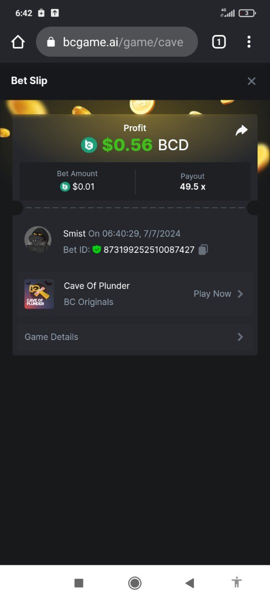Moderator Giandreas Posted July 6, 2024 Moderator Share Posted July 6, 2024 Read Carefully Before Start To Hunt Forum Daily Challenges #653Hunt : Cave of Plunder Win the highest pay out Min Payout : x17 Min Level 10 ️Duration Starting : Now End time : 23.59 UTC Time How to Join? Make screenshot + paste your bet link + UID or Profile link Any coin, with min bet 0.01 USD is allowed (jb/bb/bcl not allowed) Reward Prizes 1st Place.....$7 BCD 2nd Place.....$5 BCD 3rd Place.....$4 BCD 4th Place.....$3 BCD 5th Place.....$2 BCD 🏵 Winners will be announcing next day after Roll Point! Link to comment Share on other sites More sharing options...