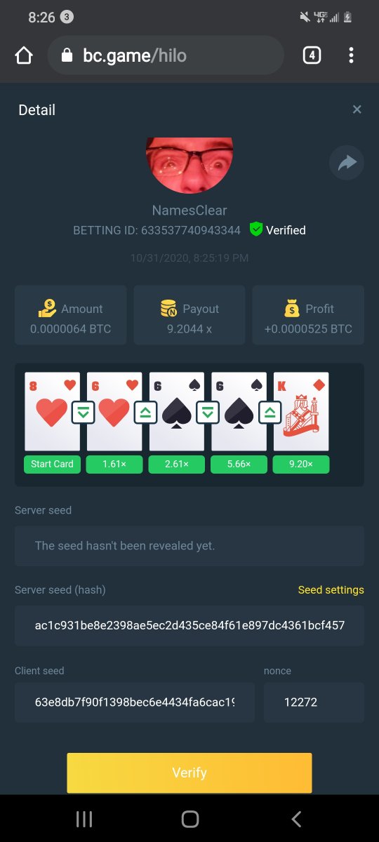 • If you skip, only the 1st starting skipped 6 card counts. You must play the other ones in order for them to qualify. Should you skip and a 6 comes out after the 1st one, it doesn't count unless you actually bet hi/low on that card.