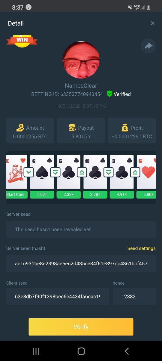 • Take a screenshot displaying the round detail like so and send a reply to this thread with it: