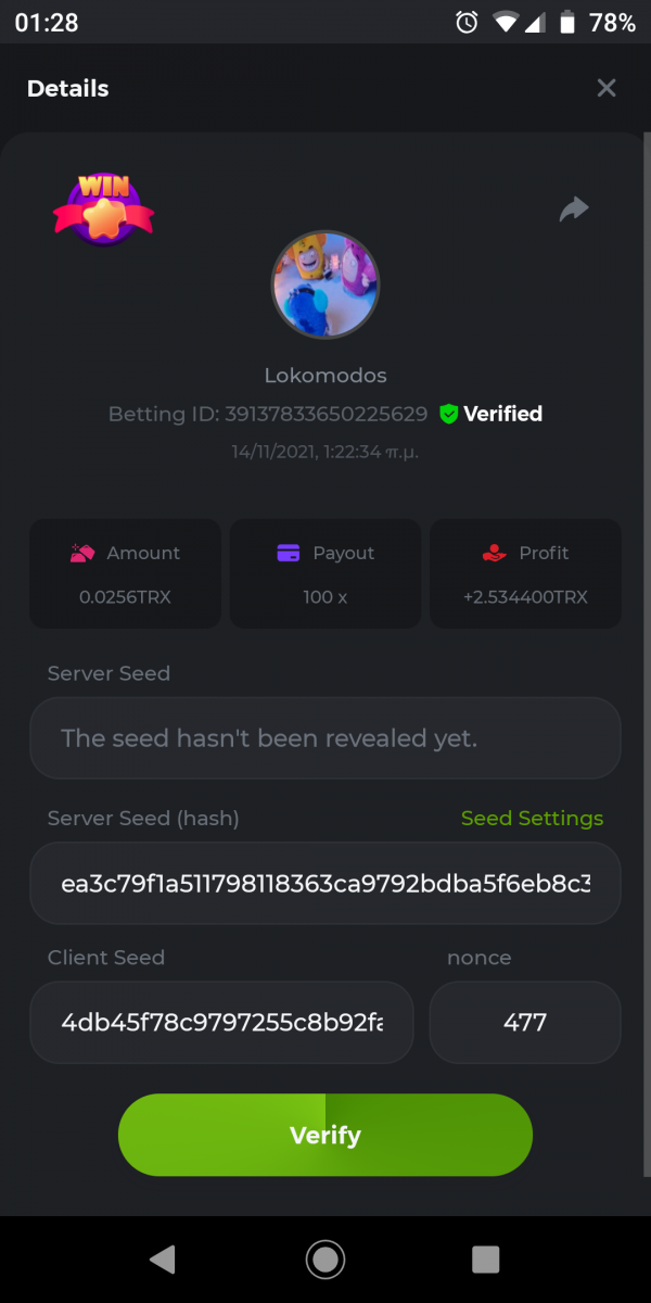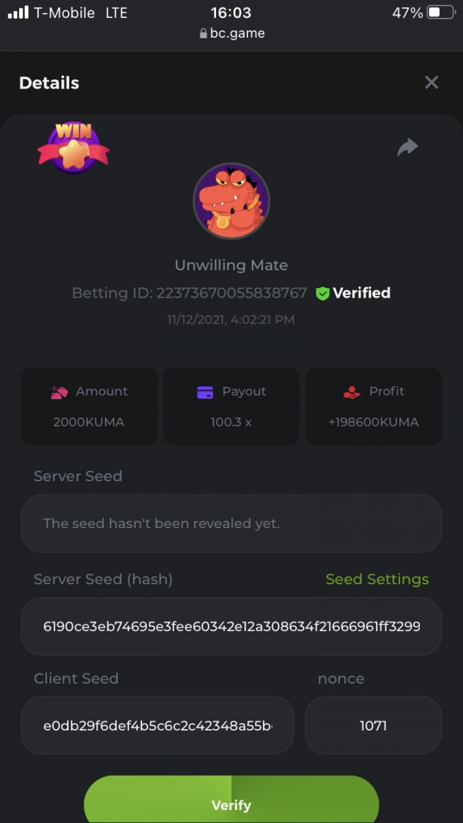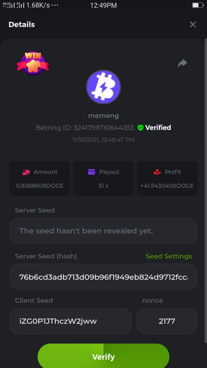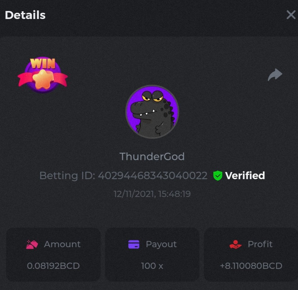 bassabar Posted November 9, 2021 Share Posted November 9, 2021 Betting ID: 13647331597490725 Multiplier: 106.5x Betamount Link to comment Share on other sites More sharing options...