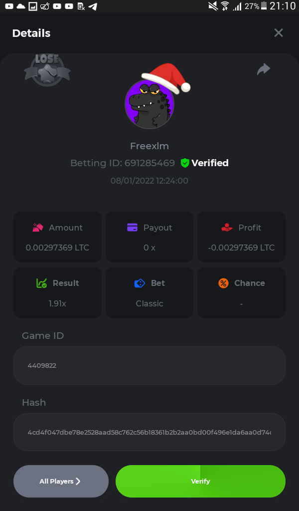 Nikowin88 Posted January 9, 2022 Share Posted January 9, 2022 (edited) X10 : Bet ID: #691792759 x100 Bet ID: #691799068 x30 Bet ID: #691806723 X20 Bet ID: #692590060 Edited January 10, 2022 by Nikowin88 Link to comment Share on other sites More sharing options...