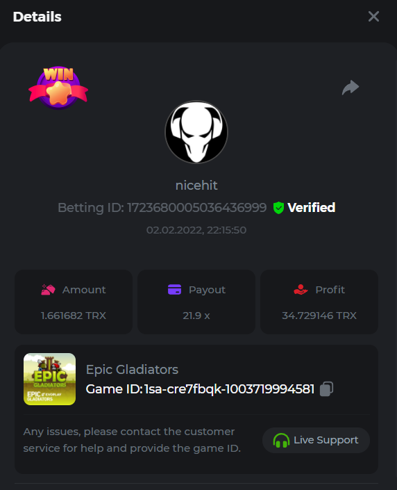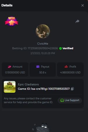 Event Team Niobium Posted February 10, 2022 Author Event Team Share Posted February 10, 2022 Congratulations to the winners of the Evoplay Battle!Β We had 50 valid entries, and 2 players completed the extra bounty. All prizes have been sent!Β Check out the ranking below: Top 50 Participants Ranking Username Prize Extra bonus 1st Hoya_ $500 - 2nd Π€Π»ΠΈΠ½Ρ $250 - 3rd Sleepiez $150 $100 4th Satoshimaker $100 - 5th nssBoB $50 - 6th KG562 $50 - 7th W0NGA $50 - 8th LemaK $50 - 9th Mugen $50 - 10th POLANA $50 - 11th Shamsham99 $12.5 - 12th Mvownz $12.5 - 13th Yhum $12.5 - 14th BLessingGirL05 $12.5 - 15th aifosha $12.5 - 16th Mkulet $12.5 - 17th Elpresidente $12.5 - 18th MaksatMe $12.5 $100 19th Cran $12.5 - 20th Fruitblood $12.5 - 21th narcisyo $12.5 - 22th Nashka $12.5 - 23th jhonncueva $12.5 - 24th RORY $12.5 - 25th Aksyen12 $12.5 - 26th nica19 $12.5 - 27th MundusDivitiarum $12.5 - 28th MAHDI-60 $12.5 - 29th selena42 $12.5 - 30th NORNMAn $12.5 - 31th WooWPoT $12.5 - 32th Crypt0pm $12.5 - 33th skipping $12.5 - 34th CivicMe $12.5 - 35th OhNoooo $12.5 - 36th nicehit $12.5 - 37th Bubbles00 $12.5 - 38th Kristalina $12.5 - 39th _r_0_w3_n_4_ $12.5 - 40th Winsk3y $12.5 - 41th Betmin $12.5 - 42th Kaira_j $12.5 - 43th Capitan11 $12.5 - 44th sanjahimik $12.5 - 45th luckypankaj $12.5 - 46th B0unty $12.5 - 47th bassabar $12.5 - 48th Sonch $12.5 - 49th Mrlove $12.5 - 50th RagEE $12.5 - Check out our official Promos & Events pageΒ here. 2 Link to comment Share on other sites More sharing options...