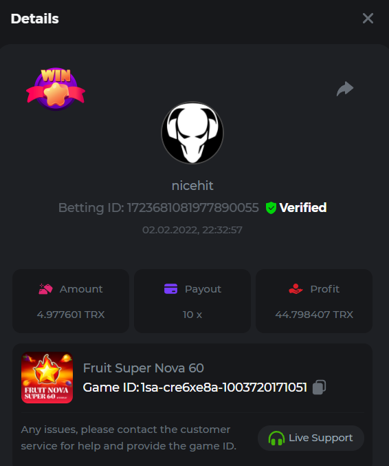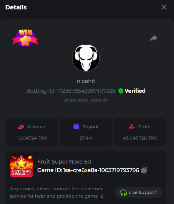 bassabar Posted January 31, 2022 Share Posted January 31, 2022 Fruit Super Nova 60 Multiplier: 14.4x Betting ID: 1723510599701182336 Β Link to comment Share on other sites More sharing options...