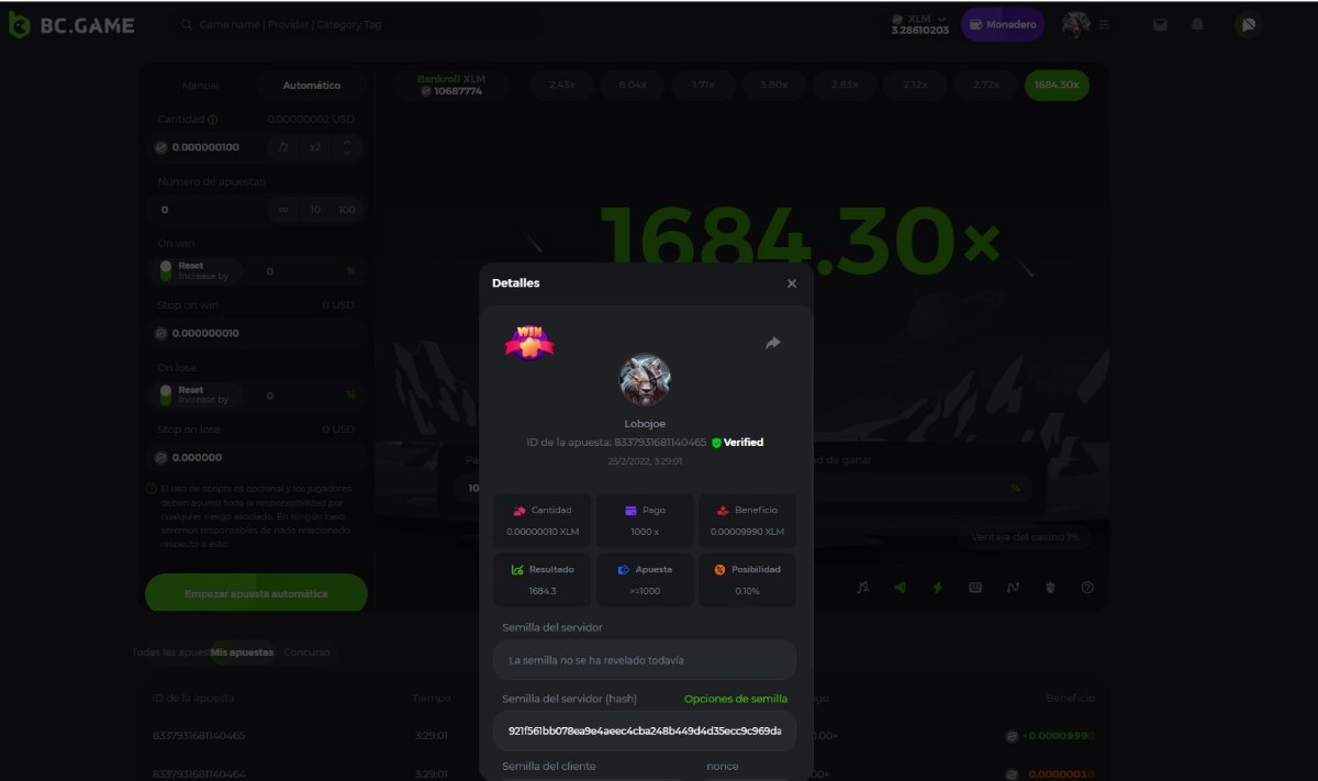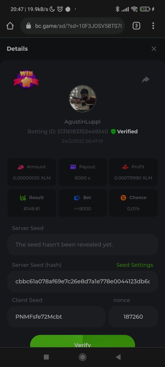 s0urce Posted February 23, 2022 Share Posted February 23, 2022 24 hours Limbo challenge! You have to hit as many multipliers as you can from this list: 500x - 1000x - 2000x - 4000x - 8000x - 16000x - 32000x - 64000x - 128000x - 256000x Players who match the most multipliers will receive a prize. Available Prizes 1st place... $25 2nd place... $12.5 3rd place... $7.5 4th-10th place... $2.5 Rules Don't post old bets Your bets must be a win In case of a tie, the player who wins the bet first will receive the prize. You have to post all the bets in 1 comment, if you want to add another bet, you have to edit your post. Failure to follow instructions will result in your submission being null and void. Requirements There is no minimum VIP level There is no minimum bet How to Enter To enter, copy the link of the bet you'd like to submit. Once you've copied it, paste it as a reply to this thread like so: Link: https://bc.game/sd/?sd=10EV9HVMAI07BN Below there's an illustrative image with more details. In the same post, upload a screenshot of your win by clicking the game ID WITH VIEW IN USD mode ENABLED (accessible at the bottom of dropdown menu for your wallet up top, and Submit Reply. Done! This way, we can ensure that your bet indeed met the minimum requirement at the time of placing it: Link to comment Share on other sites More sharing options...