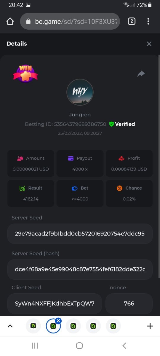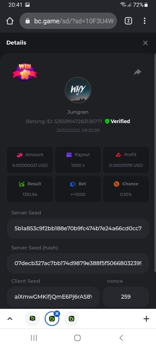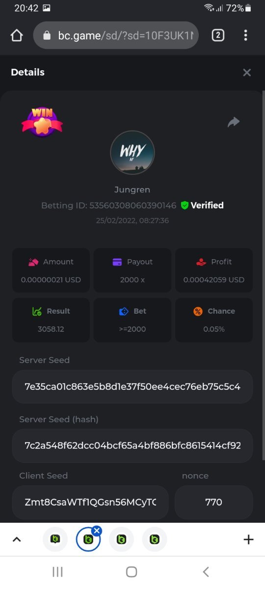 Dennis030 Posted February 24, 2022 Share Posted February 24, 2022 Okay I will post every multiplier I get in here... 1. 1000x https://bc.game/sd/?sd=10F3AU89G1RG2B 2. 2000x https://bc.game/sd/?sd=10F3C0WFYY1D77 3. 4000x https://bc.game/sd/?sd=10F3COW6YZL82B Link to comment Share on other sites More sharing options...