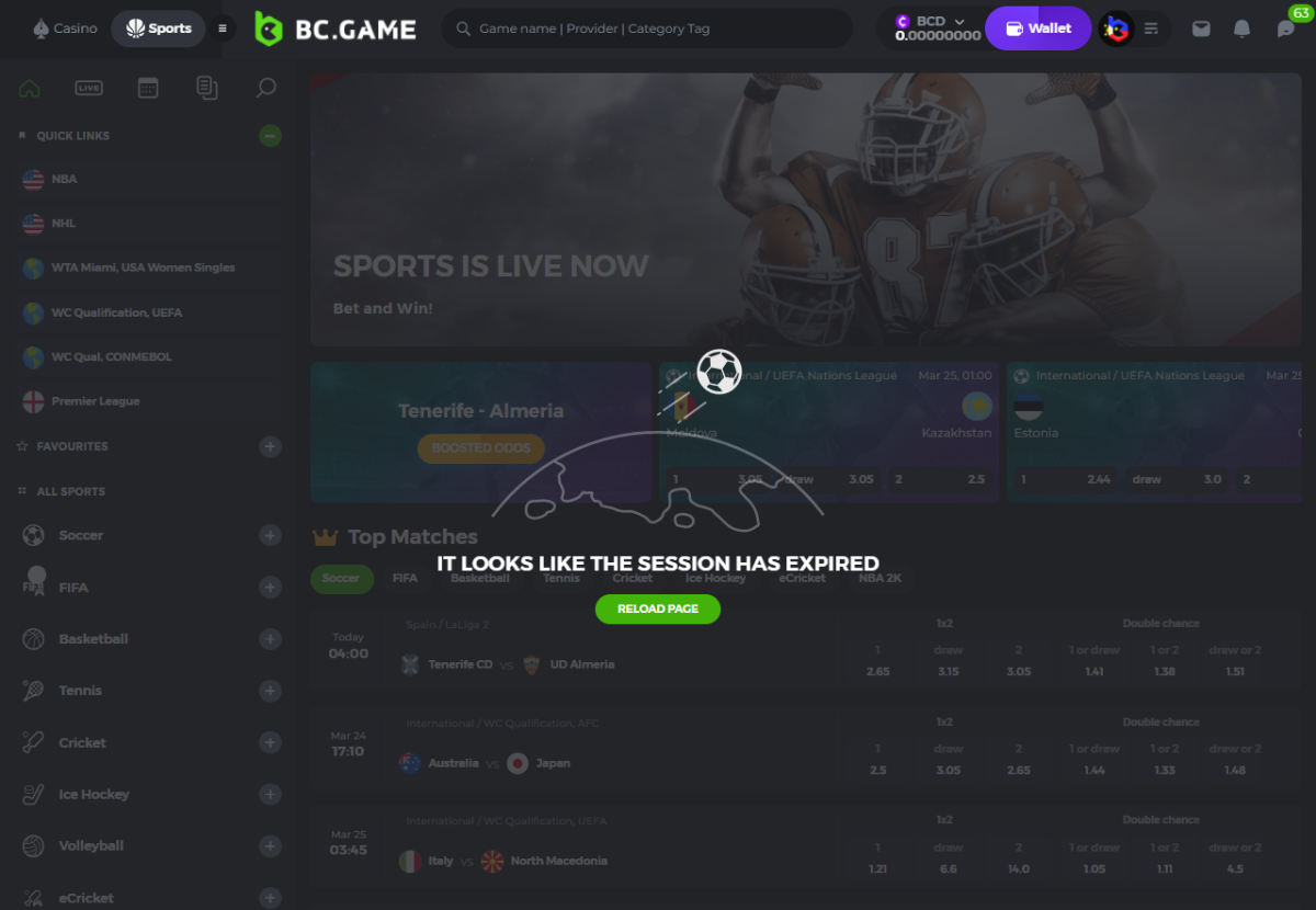 Why i can't use sports?i tried to refresh many times but it is still like that.Even on my phone.Base on the home page of sports it's looks like a good site for sport betting.That's all i can say for now in Sports.