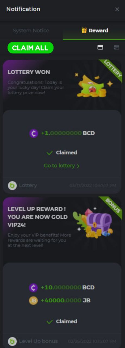 A CLAIM ALL BUTTON IN NOTIFICATION