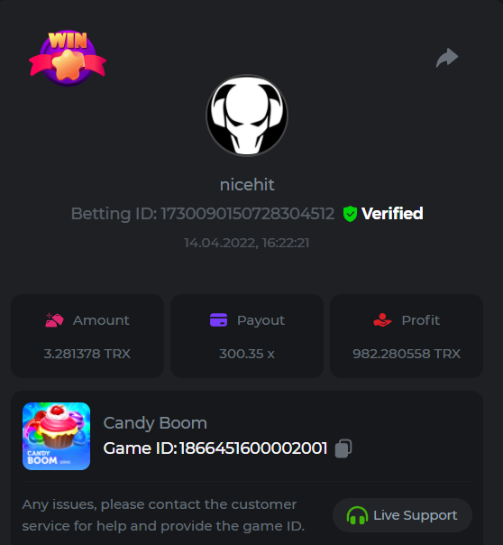 • If the player submits multiple winning entries for the same game, the entry with the highest multiplier will be valid.