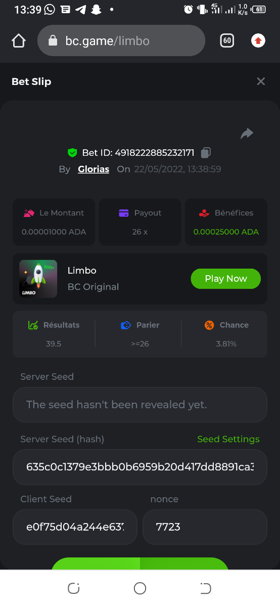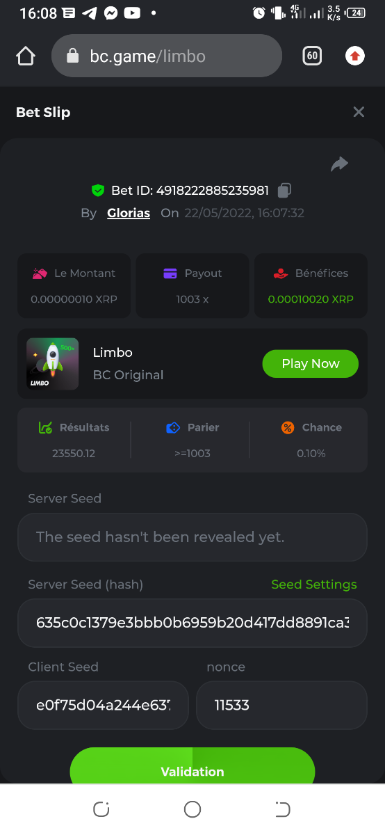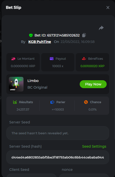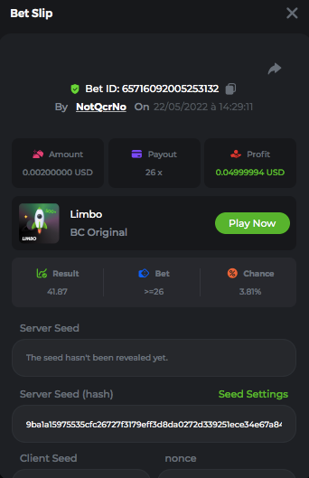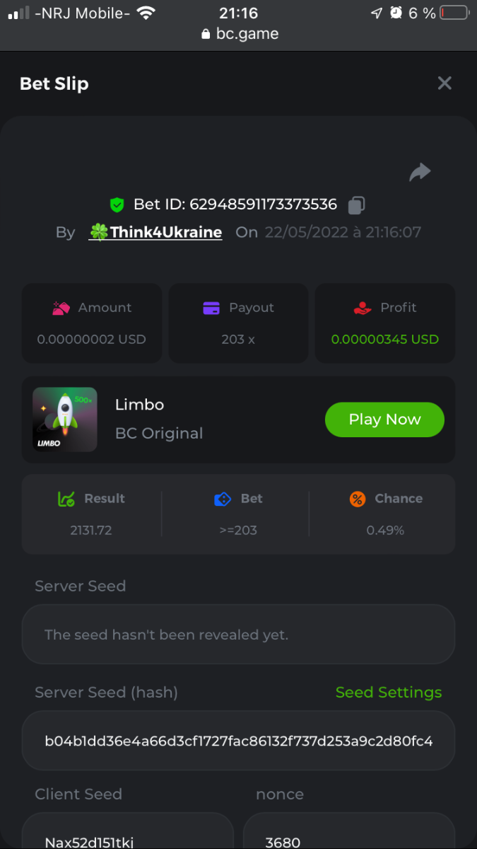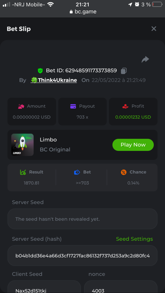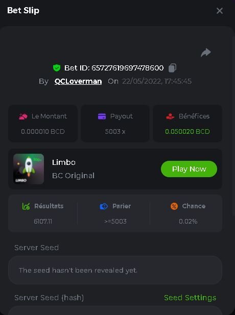 Member AkSyEn03 Posted May 22, 2022 Member Share Posted May 22, 2022 🏵ÉVÉNEMENTS DU WEEK-END🏵Uniquement pour la room FrançaiseDÉFI :Heure de début : 22Mai 2022 à 13h. Heure de fin : 13h le 23 Mai/2022 24h de defi n'est ce pas merveilleux ^^ Quel est le défi ? Jeu : LIMBO Avoir un maximum de points possible sur les 17points x26,x53, x103, x203, x 303 x 503, x 703, x903, x1003, x2003 x3003, x5003, x7003, x9003, x10003, x15003 x20003 Bonus pour x50003 Il faut valider minimum 5 bet x53, x103, x203, x 303 x 503 pour la qualification. SI égalité sur un multiplicateur , le filtre sélectionnera en 2éme la somme et sera prise en compte .VIP minimal > Il n'y a pas de niveau VIP minimum.Pari minimum : 0$ JB est pris en compte Récompenses 19$12$7$4eme place à 10 -ème place 2$Conditions bonus :Accédez au jeu pour choisir votre ID de pari, cliquez sur l'icône Partager (↷) puis sur Copier le lien Dans le même message, téléchargez une capture d'écran de votre gain en cliquant sur l'ID du jeu 1. N'utilisez pas plusieurs comptes 2. Les paris soumis avant ou après la date et l'heure limite ne seront pas acceptés 4. tout manquement au conditions de bonus, vera son paris annulé. alors lisez bien avant de commencer et BC Game vous souhaite des moments heureux et profitablesBonne chance, que le meilleurs gagne !! Link to comment Share on other sites More sharing options...