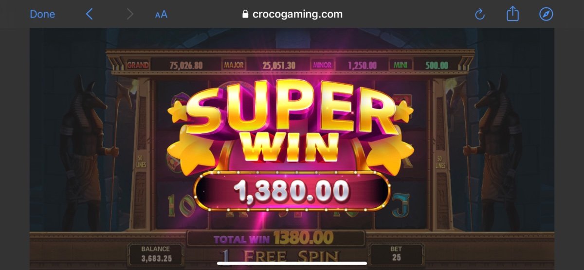 Trò chơi của tôi sẽ ở trong trò chơi Ai Cập, tôi gần như bị phá vỡ và sau đó vài lần quay cuối cùng đạt hơn 1k. Đó là một ngày tốt lành